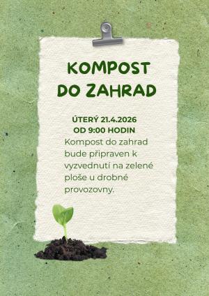 Informujeme občany o možnosti odběru kompostu do zahrad zdarma. Kompost je navezen u drobné provozovny.