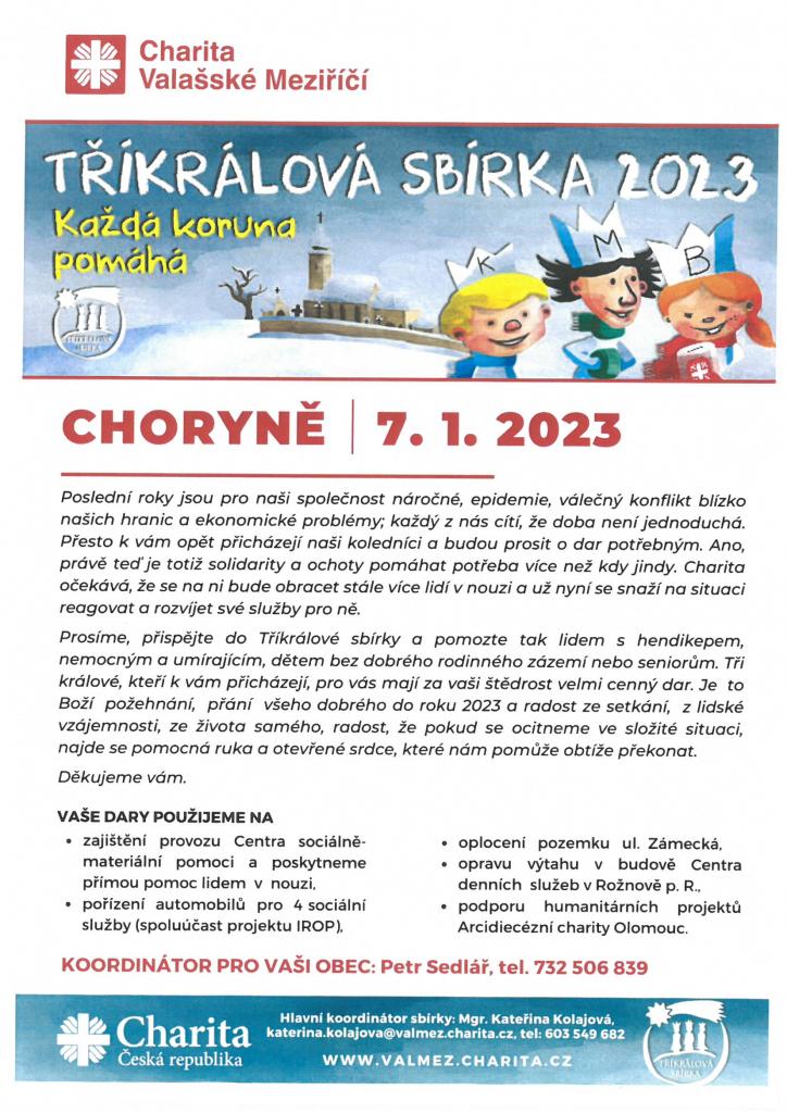 Přispěním do Tříkrálové sbírky pomůžete lidem s hendikepem, nemocným a umírajícím, dětem bez dobrého rodinného zázemí nebo seniorům. Děkujeme za vaši štědrost.