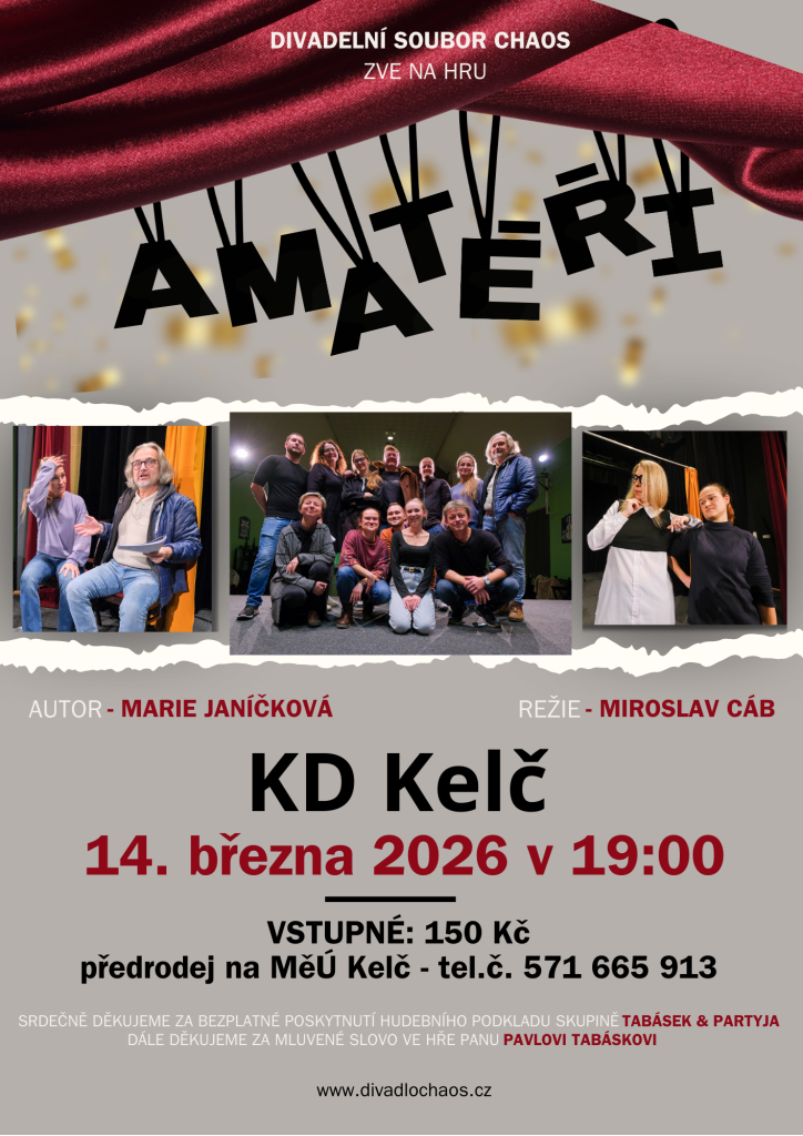V sobotu 14.března se v KD v Kelči představí divadelní soubor Chaos z Valašské Bystřice s bláznivou fraškou z prostředí ochotnického divadla.