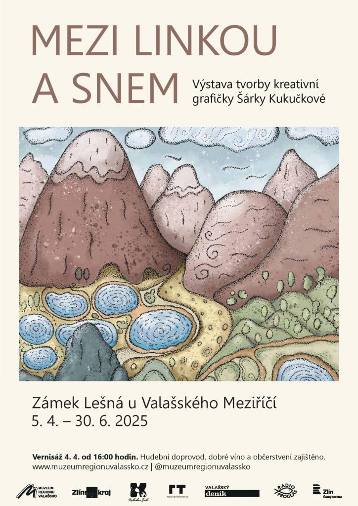 Letošní návštěvnická sezona na zámku Lešná u Valašského Meziříčí startuje v úterý 1. dubna. Hned z jejího kraje si budete moci prohlédnout zajímavou výstavu Mezi linkou a snem, která nabízí výběr z tvorby místní výtvarnice, grafičky a designérky Šárky Kukučkové. Vernisáž proběhne v pátek 4. dubna od 16 hodin. Výstava pak bude k vidění od 5. dubna do 30. června. Více na https://www.muzeumvalassko.cz/akce-a-vystavy/mezi-linkou-a-snem-vystava-tvorby-kreativni-graficky-sarky-kukuckove