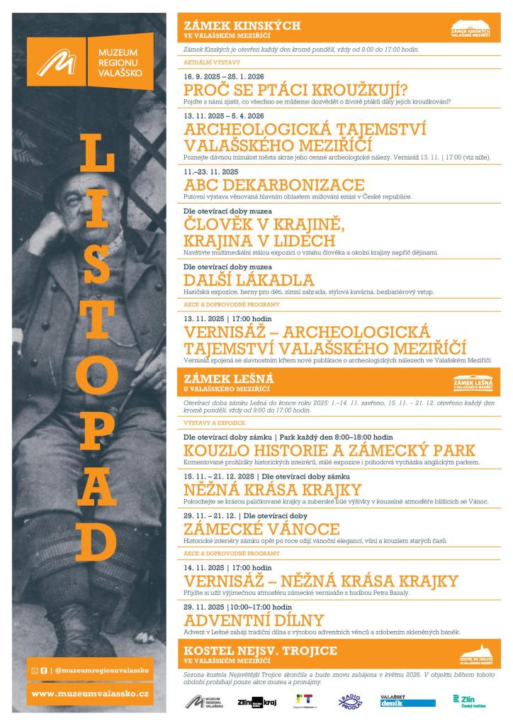 Zámek Lešná je momentálně uzavřen z důvodu příprav na výstavy a akce konané v rámci adventního období. To zahájí v pátek 14. listopadu vernisáž výstavy Něžná krása krajky, která proběhne od 17:00 hodin. Zámek pak bude otevřen od soboty 15. listopadu do neděle 21. prosince, a to každý den kromě pondělí, vždy od 9:00 do 17:00 hodin. V průběhu prosince nebudou probíhat klasické komentované prohlídky historických komnat. Každý adventní víkend se ale můžete těšit na zajímavou předvánoční akci – 29. listopad Adventní dílny, 6. prosince Mikulášský jarmark se zuberskou výšivkou a 14. prosince Vánoční hrátky z pohádky do pohádky, jejichž součástí budou i komentované prohlídky výstavy Něžná krása krajky. Jaká každý rok se můžete těšit na adventně vyzdobené zámecké interiéry. Více na https://www.muzeumvalassko.cz/