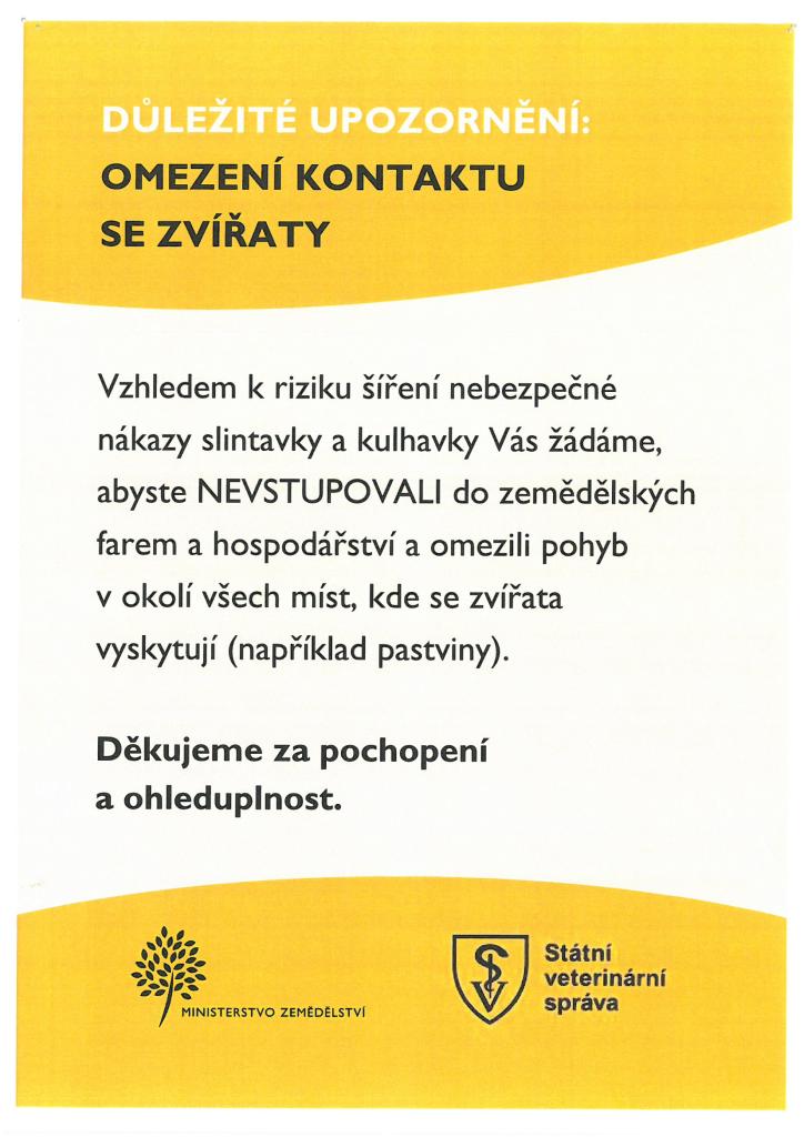 Slintavka a kulhavka (SLAK) - LETÁKY SVS: Možnosti přenosu nákazy, Příznaky skotu, krizová linka, omezení kontaktu se zvířaty